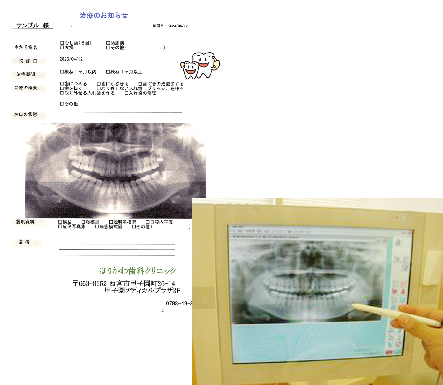 必要に応じてお口全体の写真(パノラマ写真)もしくは 部分的な写真(デンタル写真)をお撮りします